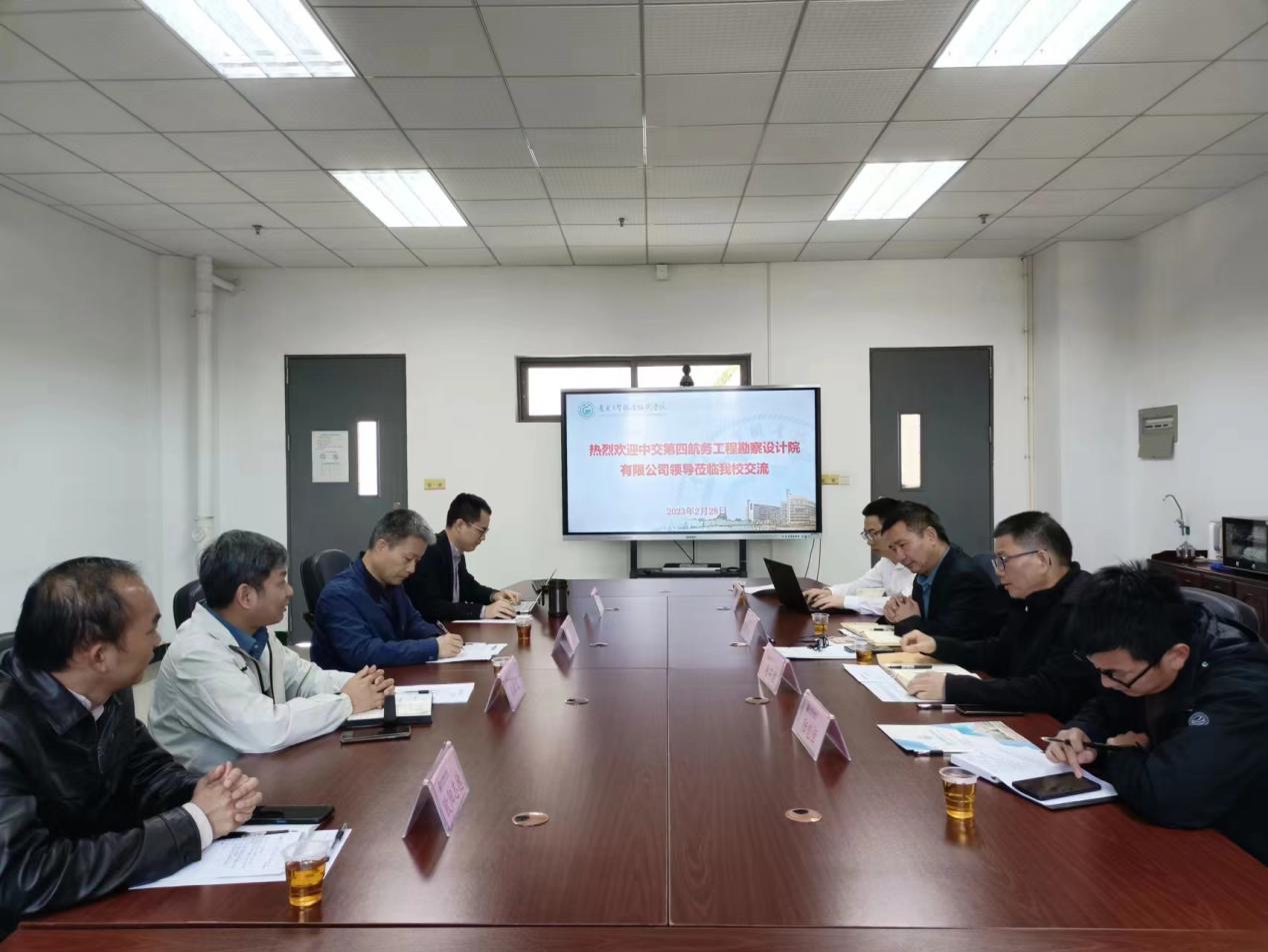 2月28日上午,中交第四航务工程勘察设计院有限公司一行5人来访我校洽谈校企合作。测绘遥感信息学院党总支书记、院长速云中,测绘遥感信息学院办公室主任林雄波,测绘遥感信息学院设备与实训教学管理中心负责人吴献文进行了接待。