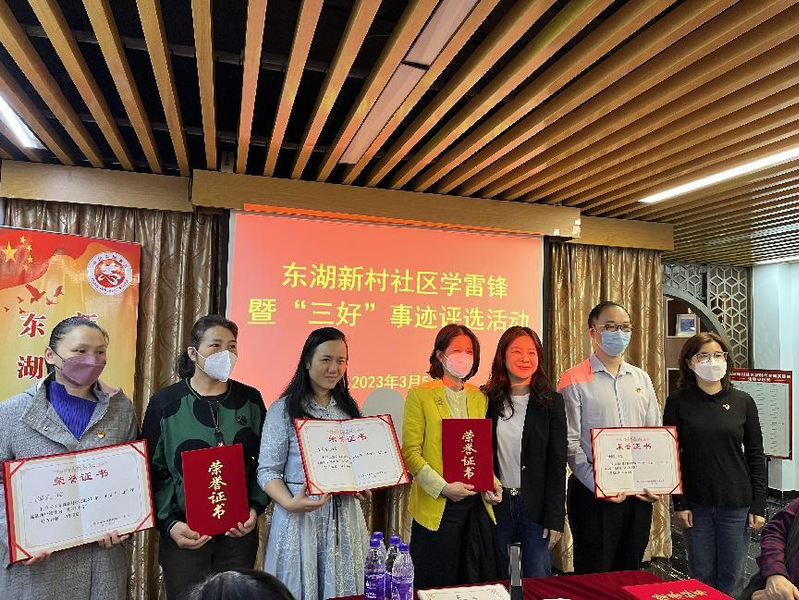 上午10时,在东湖新村社区党群服务站开展了“三好”(社区好人、社区好党员、社区好家风)事迹评选活动,社区党委书记罗婷婷和学院党总支副书记李元共同给15名“三好”人员颁发了奖状。活动现场,社区党委书记通过生动朴实的语言,声情并茂地讲述了“三好”人员的先进事迹,让学院的师生党员接受了一次精神的洗礼,纷纷表示要学习他们乐于助人、无私奉献的大爱精神。