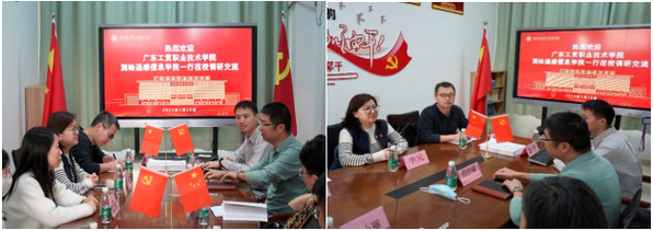 为进一步贯彻落实党的二十大精神,全面推进学院基层党建工作“标杆院系”、“样板支部”培育创建,3月16日,由测绘遥感信息学院党总支副书记李元带队,教师第一党支部书记侯林锋、学生党支部书记张玉荷等一行八人前往广东机电职业技术学院汽车学院开展党建学习调研。广东机电职业技术学院汽车学院党总支副书记彭少斌、教工党支部副书记、汽检专业涂祥,学工办主任、团委书记周小丽等接待了来访一行。