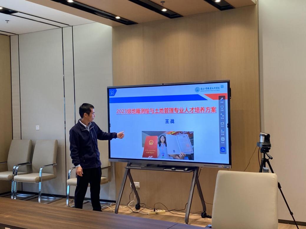 图4 王战老师介绍地籍测绘与土地管理专业人才培养方案