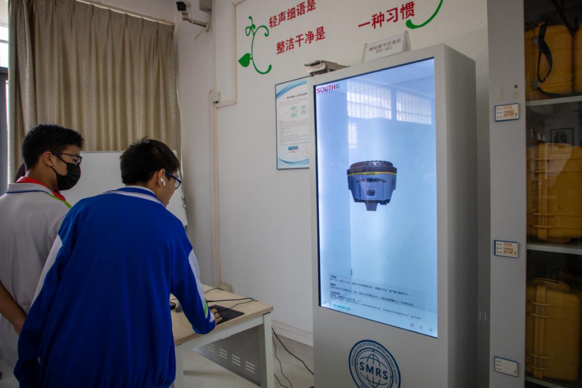 来访学生在师兄师姐的带领下兴致勃勃前往我校测绘地理信息中心参观,由杨忞婧、丘均耀、刘溢晨老师引导大家参观实训室及部分测量仪器、体验虚拟仿真设备。