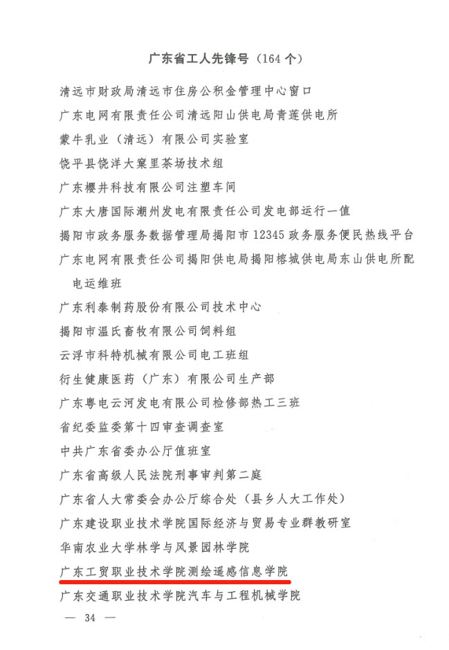 为了深入贯彻落实党的二十大精神,大力弘扬劳模精神、劳动精神、工匠精神,广东省总工会于2023年4月27日正式召开2023年庆祝“五一”国际劳动节暨全国五一劳动奖和全国工人先锋号表彰大会,表彰一批先进集体和先进职工,分别授予2023年度广东省五一劳动奖、广东省工人先锋号荣誉称号,团结激励工人阶级和广大劳动群众爱岗敬业、拼搏奉献,在全面建设社会主义现代化国家新征程中谱写新时代绚丽新华章。本次大会共表彰省五一劳动奖状132个、省五一劳动奖章317名、省工人先锋号164个。其中,经单位推选,省级审核公示,太阳集团城官网1407测绘遥感信息学院荣获2023年度广东省工人先锋号。