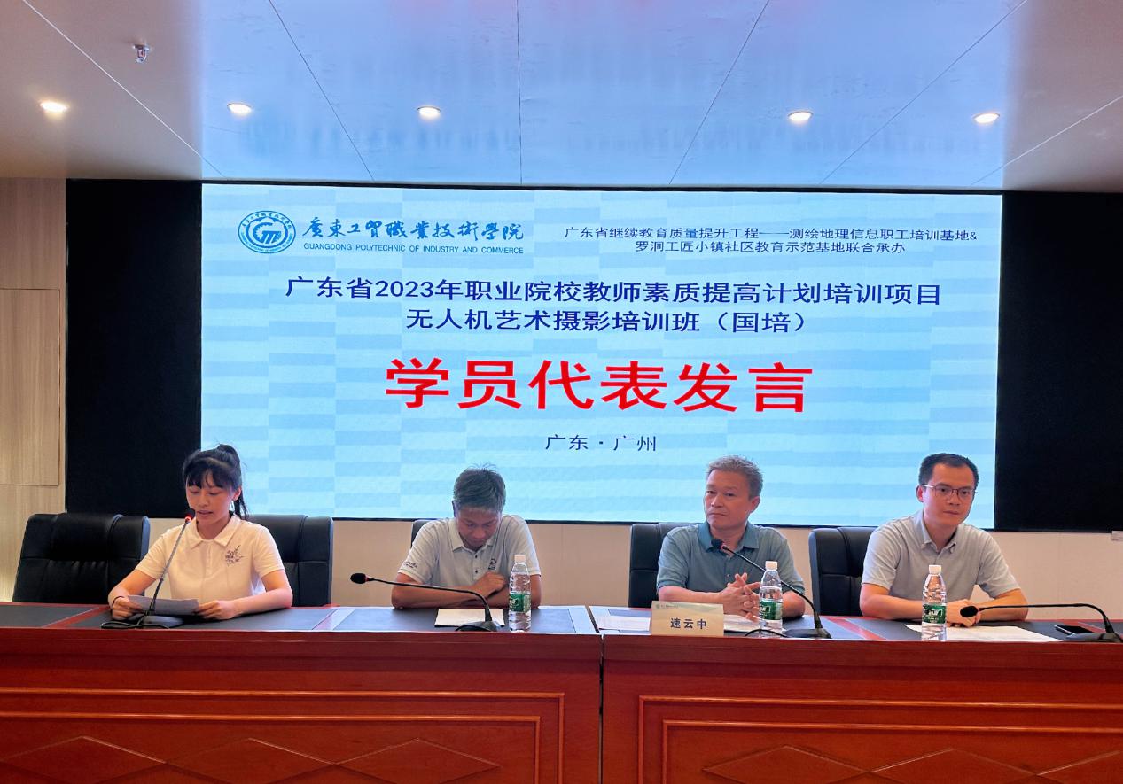 8月3日,由测绘遥感信息学院承办为期14天的2023年广东省职业院校教师素质提高计划项目—无人机艺术摄影(国培)培训班(以下简称:“2023无人机摄影国培班”)顺利结班。下午,结班仪式在太阳集团城官网1407天河东校区一楼报告厅隆重召开。学校测绘遥感信息学院党总支书记、院长速云中,国培项目负责人吴献文老师,测绘遥感信息学院办公室主任林雄波及来自广东省各中职院校的40名学员以及工作人员一起参加了结班仪式,结班仪式由速云中主持。