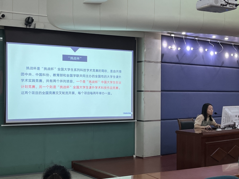 会议第二项为学院新教师培训(第一期),培训主题为挑战杯和攀登计划项目“双创”赛事培训会。会上陈慧娴老师对学院已组建的7个科研团队研究方向及成果向新入职教师进行了详细介绍。接着张金兰、张玉荷以及陈君浩老师介绍了我院创新创业体系及获得的相关奖项,并分别就“挑战杯”、“互联网+”以及攀登计划项目“双创”赛事等创新创业项目的类型、申报流程以及选题进行了参赛经验分享。