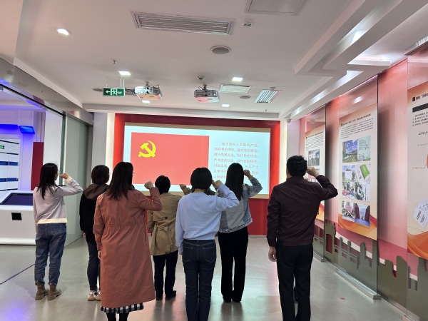 最后,大家面向党旗庄严肃立,铿锵有力地重温入党誓词,重忆入党初心,重新接受党性洗礼。