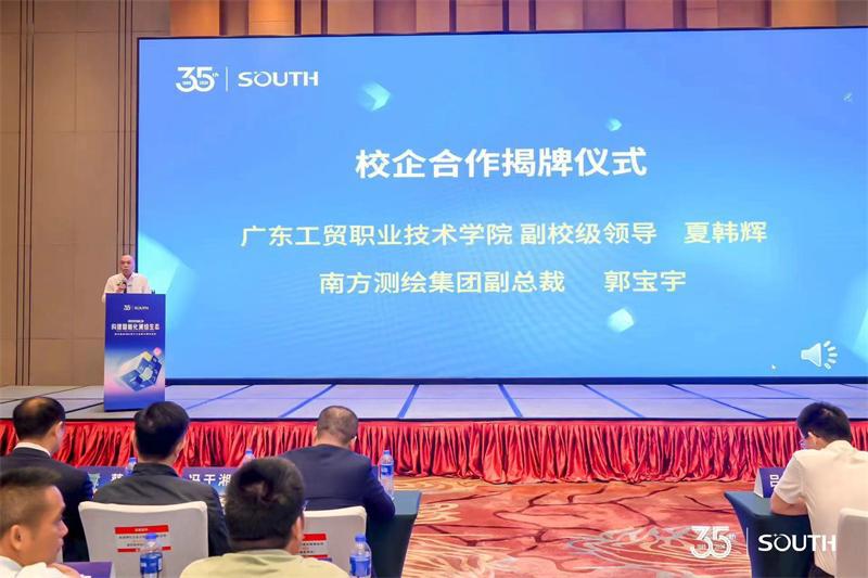 在庆典活动的高潮时刻,广东工贸南方测绘学院揭牌仪式正式举行。夏韩辉与南方测绘郭宝宇副总裁共同为学院揭牌,标志着广东工贸南方测绘学院的正式成立。这一学院的成立,将进一步推动产教融合、校企合作,培养更多具备实践能力和创新精神的高素质人才,为测绘行业的发展注入新的活力。