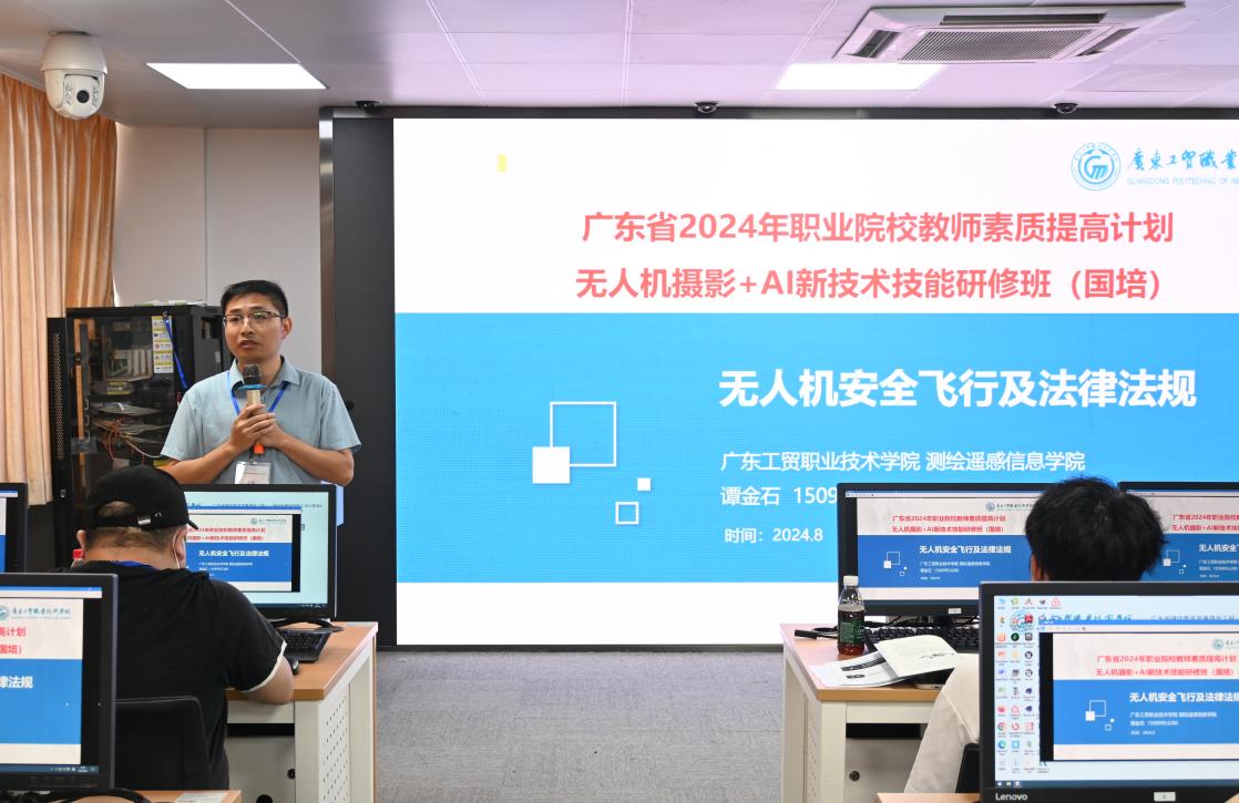 为贯彻落实习近平总书记关于教师队伍素质素养一系列要求的指示精神,按培养“四有好老师”标准要求,提升教师无人机影像AI应用能力,深度推广无人机产业行业应用,八月盛夏,太阳集团城官网1407组织了“无人机影像+AI新技术技能研修班(国培)”培训。 8月5日迎来本次培训项目的第3天,主题是无人机法律基础与飞行安全识,由谭金石老师主讲。课程讲解通俗易懂,通过寓教于乐的方式,理论与实践相合将多旋翼无人机模拟飞行训练带入实践教学中。课程深化了学员们对无人机前沿技术的理解,提高教师业务理论素养和科研能力。