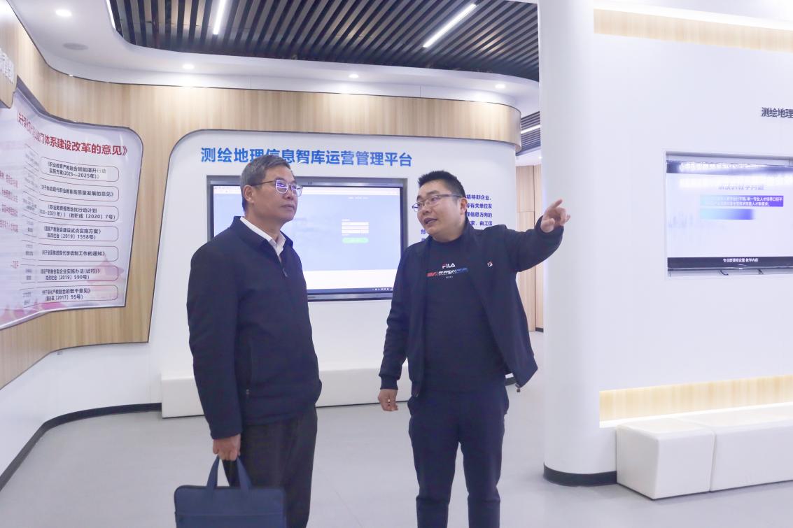 高照忠院长首先向唐力明副院长介绍了测绘学院的基本情况,随后陪同唐副院长参观了学院测绘地理信息实训中心、测绘地理信息技术虚拟仿真实训基地等场所,介绍了虚拟仿真实训资源的应用情况。