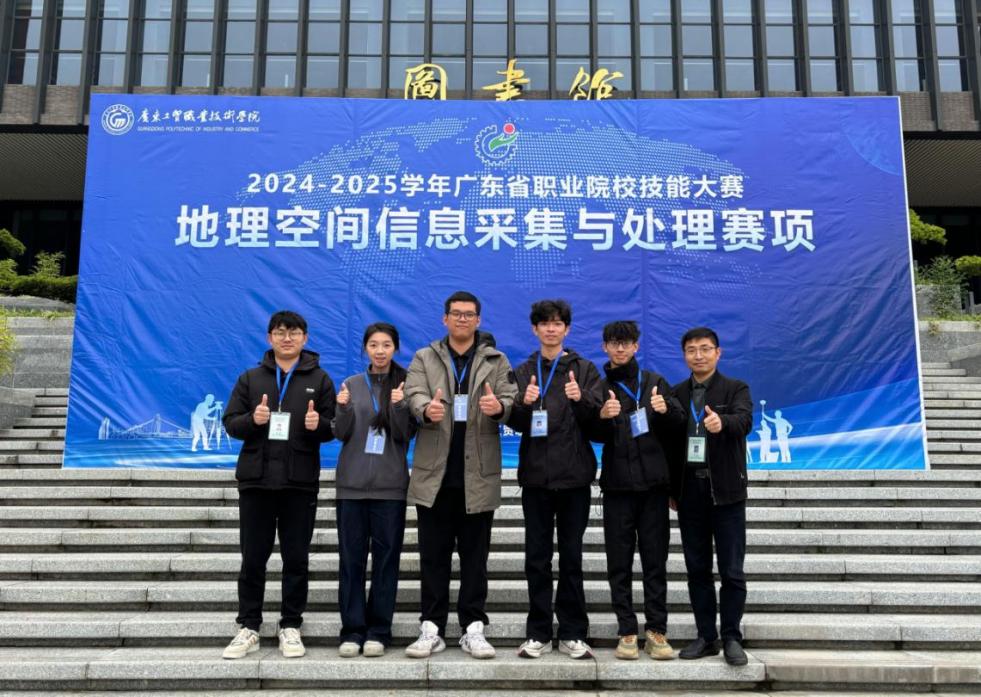 2025年3月8日至9日,2024-2025学年广东省职业院校学生专业技能大赛“地理空间信息采集与处理”赛项在我校成功举办。本届赛事吸引全省29所职业院校代表队同台竞技,我校测绘遥感信息学院23工测2班林泽楷、23地信4班张梓烨、23土管1班翁镇壬、23土管2班章铭琪4名同学,在谭金石、胡为安两位教师全程指导下,凭借扎实的专业技能、出色的团队协作能力和精益求精的职业精神,以总分第一名的优异成绩勇夺团体一等奖,充分展现了我校技术技能人才培养的硬实力。