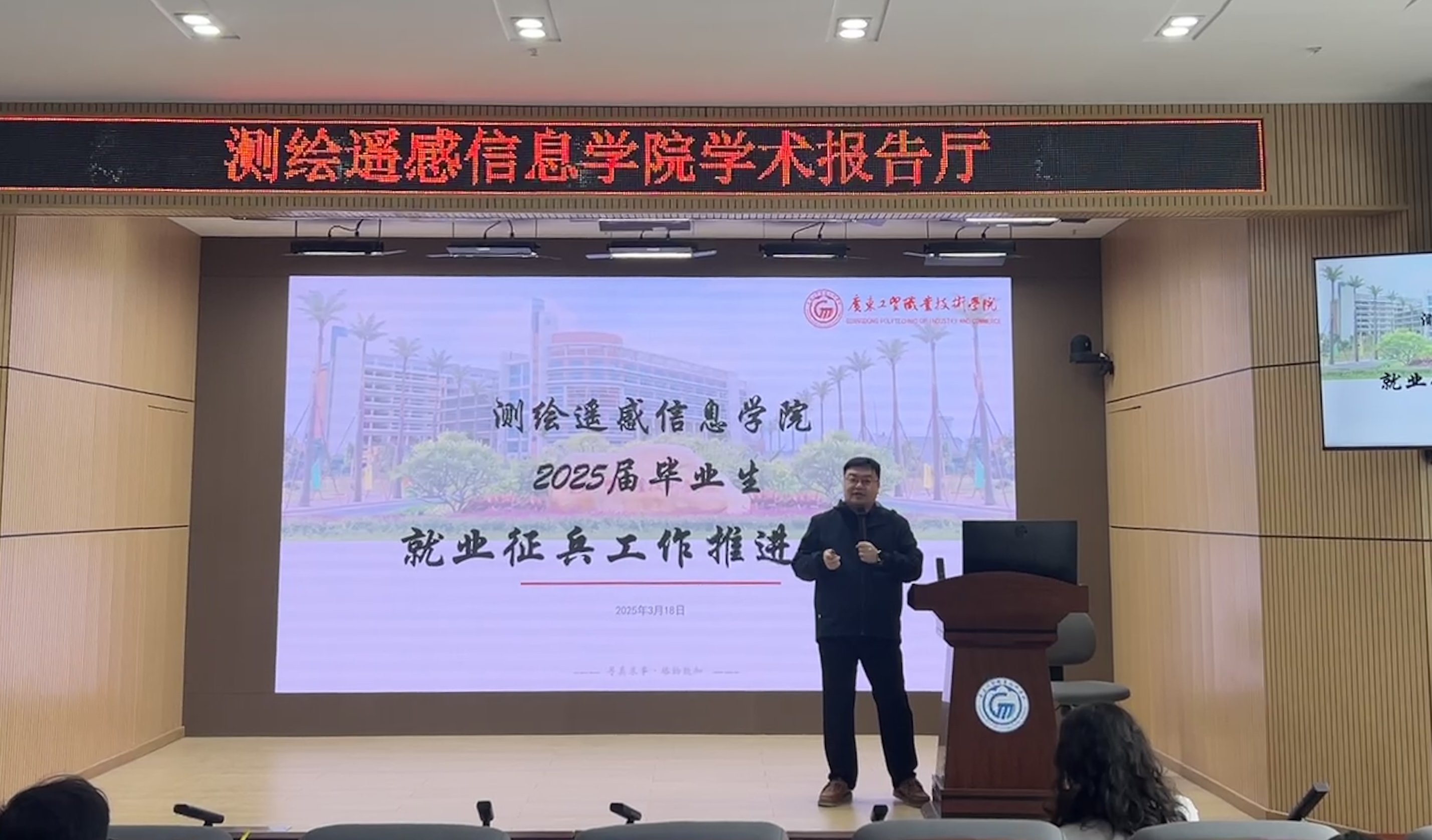 为扎实推动2025届毕业生就业与征兵工作有序开展,提前谋划部署、凝聚工作合力,测绘遥感信息学院于2025年3月18日召开春季学期第一次2025届毕业生就业征兵工作推进会议,学院党总支书记李元、党总支副书记陈君浩出席会议并讲话,各毕业班辅导员、班主任及就业联络员参加会议。