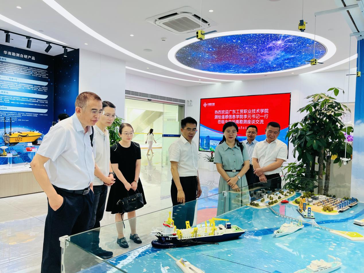 随后,调研团队来到中交广州航道局下属单位——中交华南勘察测绘科技有限公司进行实地考察,公司党总支书记李华山、副书记刘卓桓等领导热情接待了李元一行。作为专业从事测绘与地理信息技术的科技企业,该公司在海洋测绘、工程勘察等领域拥有多项核心技术,其丰富的项目经验和创新成果获得调研团队的高度评价。
