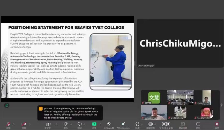 会议正式开始前,Simon Ndukwana先生介绍了卢扎内蒂克斯有限公司在教育与服务板块的具体情况。会议正式开始后,主持人郑雪介绍了双方参会人员,并简要说明本次会议背景和研讨主题。