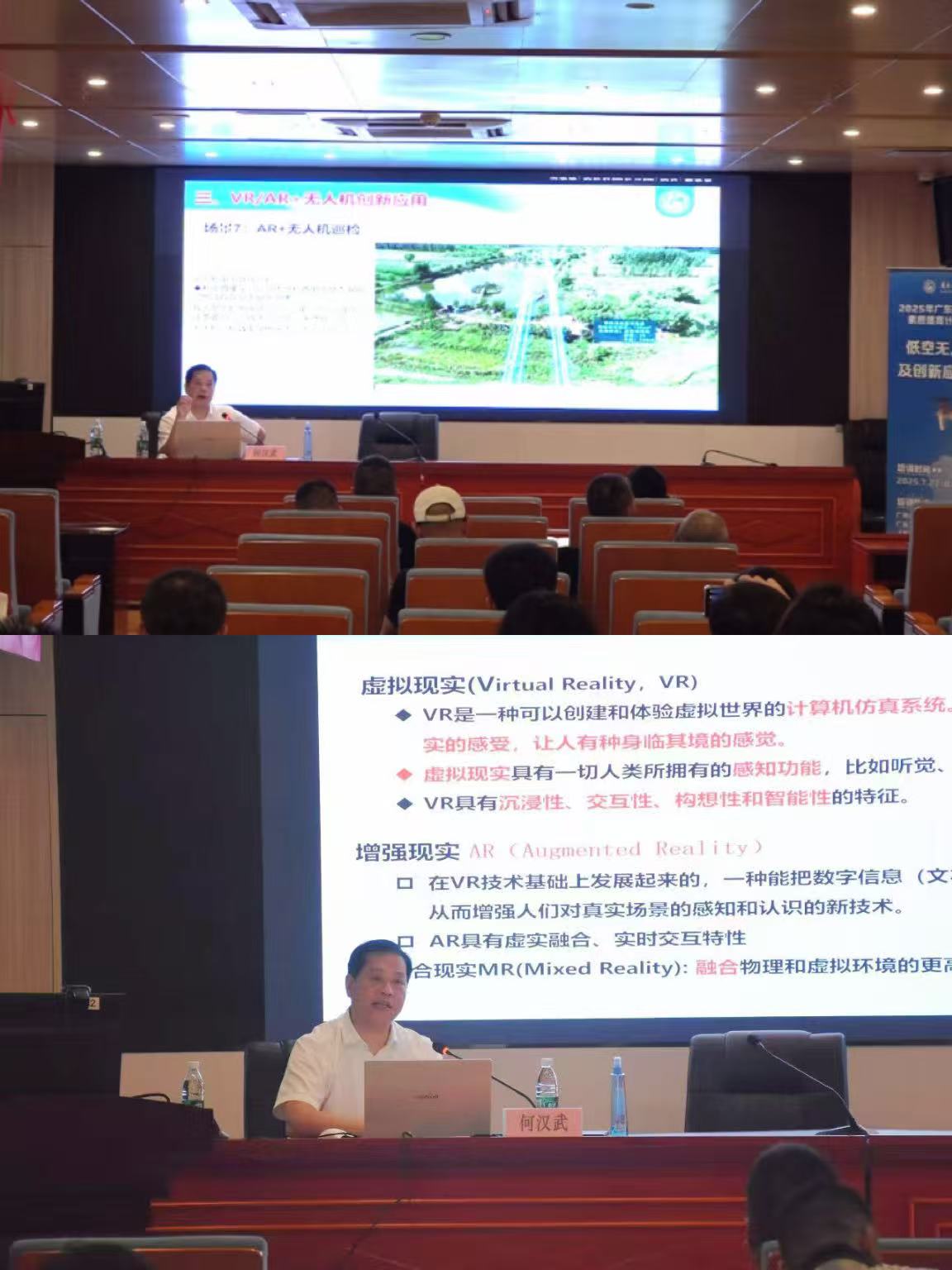 7月28日,2025年低空无人机技术及创新应用研修班正式开班,太阳集团城官网1407党委书记何汉武教授应邀为本次研修班学员们作专题授课。何汉武教授以“VR/AR赋能无人机创新应用及AI驱动的职业教育数字化转型”为题,从政策导向、技术前沿、应用场景及未来趋势等多维度,深度剖析VR/AR+无人机在农业、旅游业、电力、无人机竞速等行业的创新应用,以及AI新技术突起,为职业教育向人才培养更高端、治理体系更完善、评价模式更健全、教学模式更新型的数字化转型提供了内核驱动和外在支撑;双措并举,何汉武为提升职业教育核心理念、改变职业发展模式以及培育新时代“能工巧匠”指明方向。