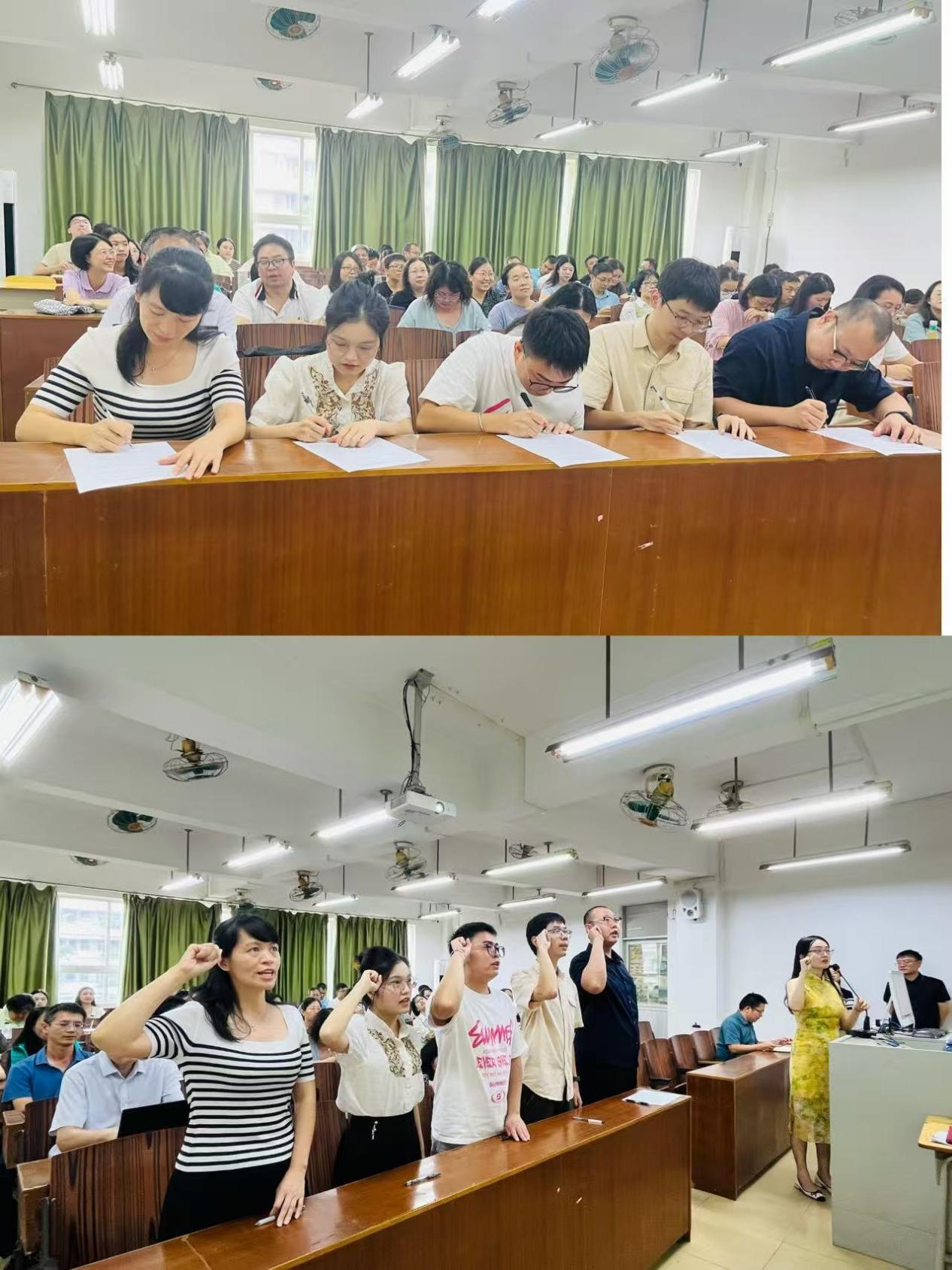 为强化教师师德师风建设,会议组织新进教师签订师德师风承诺书,并举行庄严的宣誓仪式。铮铮誓言不仅是新进教师对教育事业的郑重承诺,更是学院坚守为党育人、为国育才初心,严把教师队伍师德师风关的重要体现,进一步引导全体教师自觉规范教育教学行为,恪守师德底线。