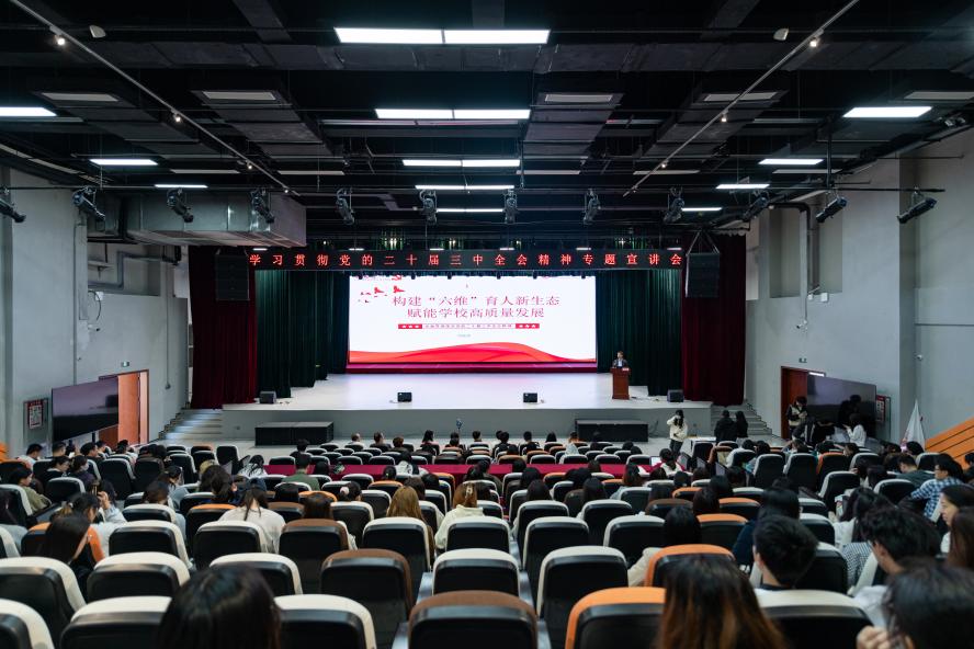 结合学校工作实际,唐毓秋就如何将全会精神切实转化为行动指南提出了明确要求。他着重强调,要深刻领会全会的重大意义,紧扣中国式现代化这一核心主题,精心谋划改革布局,凝聚各方力量,聚焦教育、科技、人才“三位一体”战略部署,通过构建“六维”育人新生态,坚定不移地落实立德树人根本任务。以改革创新为动力,推动学生发展质量与效益双提升,为学校高质量发展注入强大动力。