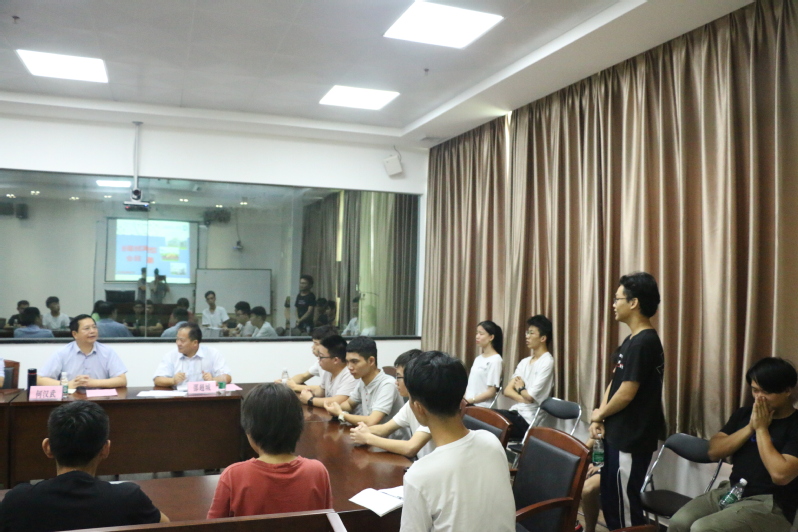 座谈会上,指导老师孙涛、黄争艳分别就指导学生竞赛、指导学生实习方面进行了经验分享,学生们也分享了自身的竞赛心得。特别是刚刚获得广东省第十五届“挑战杯”广东大学生课外学术科技作品竞赛特等奖的陈雄伟同学以及他的指导老师孙涛都分享了参加本次“挑战杯”从备战到获奖其中的艰辛与收获,引起了与会人员的共鸣。