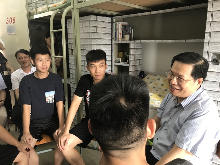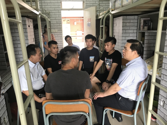 2019年5月31日中午,学校党委副书记、校长何汉武深入基层联系机电工程学院子勤3号(6栋)305室学生宿舍与学生开展谈心谈话。校办主任吴浩、机电工程学院领导班子等人一起参加本次宿舍座谈会。