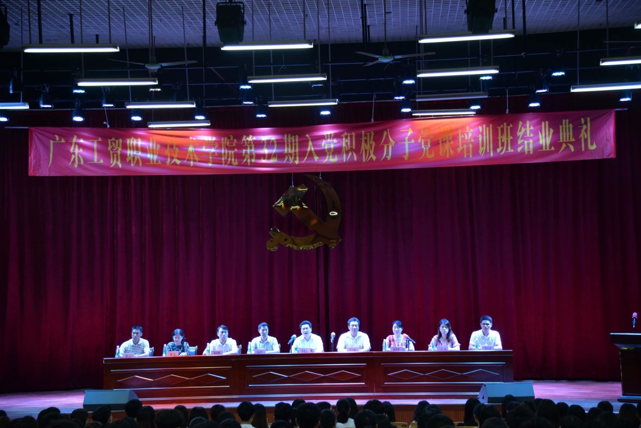 2019年6月11日下午,我校第32期入党积极分子党课培训班白云校区结业典礼在演艺厅举行,校党委委员、党委办公室主任黄雄志同志、党委党校常务副校长刘万裕同志、学生工作部部长刘建军同志和工商管理学院党总支书记周清莲同志出席,各二级学院副书记也出席了结业典礼,典礼由周清莲同志主持。