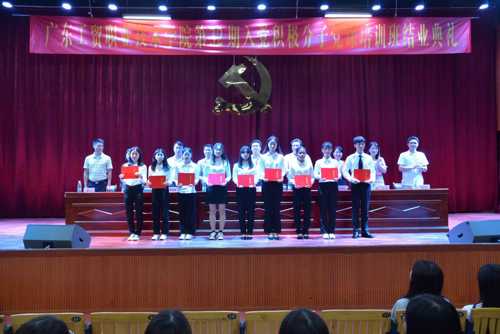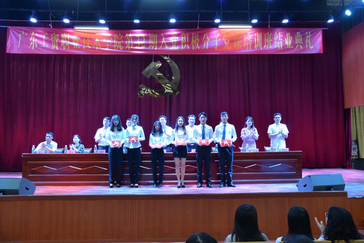 本次党课培训中涌现出51名学习刻苦、成绩突出的优秀学员,刘万裕宣读了《关于表彰第三十二期入党积极分子党课培训班优秀学员的决定》(粤工贸院组〔2019〕49号),嘱咐获得表彰的同学们要戒骄戒躁,再接再厉,在以后的学习中取得更大的进步。随后领导嘉宾为优秀学员颁发荣誉证书。