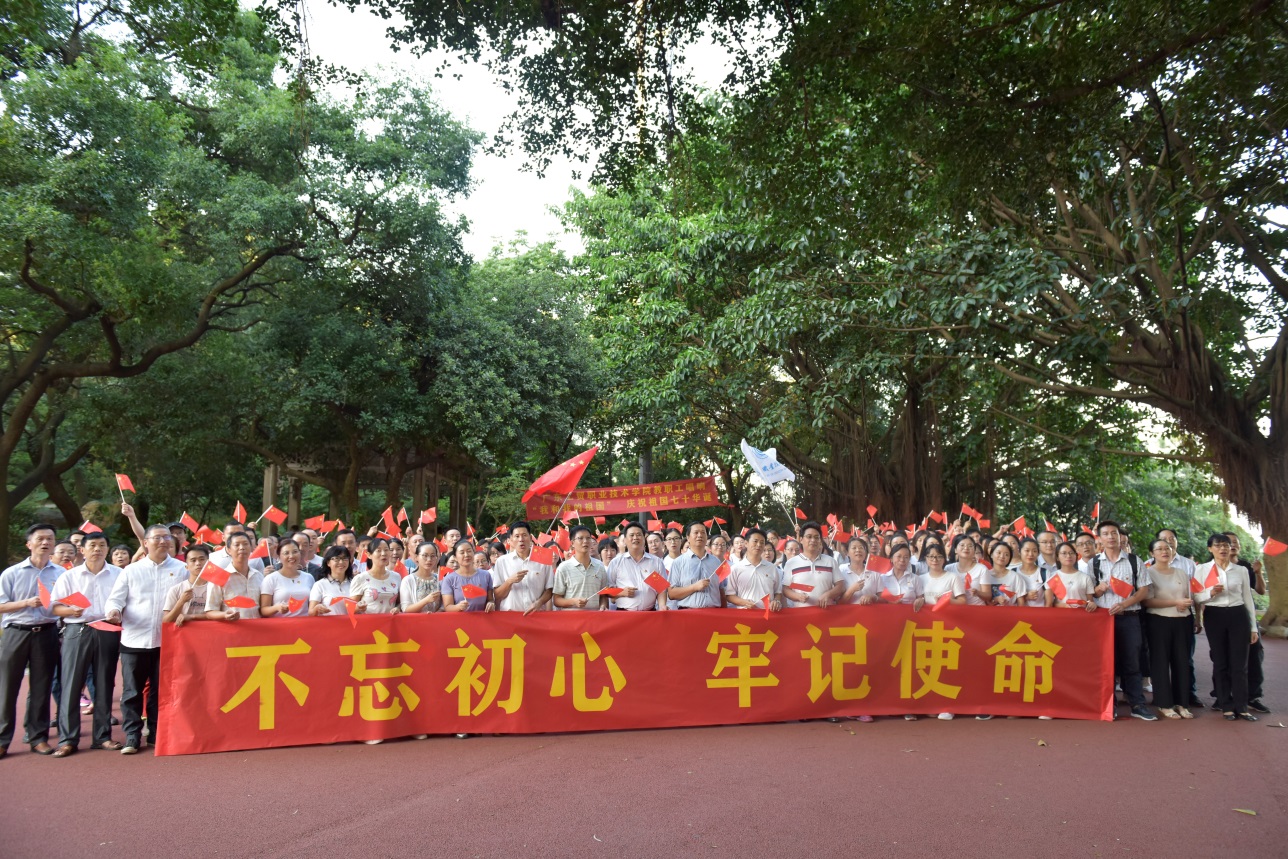 为庆祝中华人民共和国成立七十周年,弘扬爱国主义精神,激发我校教职工爱党爱国爱校的情怀。9月24日,由党委宣传部、工会、团委共同组织教职工在广州“市肺”白云山唱响“我和我的祖国”活动。学校党委副书记、校长何汉武致词,学校副校长、工会主席陈珊兴主持活动。