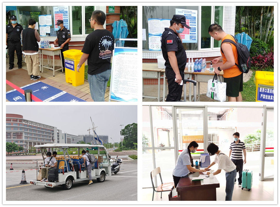 5月24日,白云校区迎来了回校备赛技能竞赛和“互联网+”创新创业比赛的学生。为了迎接学生回校,学校对学生宿舍、饭堂和训练场地进行了多次消杀,为返校学生提供从校门到宿舍的接驳车服务,在学生进入宿舍时为学生提供安全指引和装有口罩、消毒物资的健康包,饭堂为学生提供健康套餐,辅导员们和校医提前进驻白云校区24小时值班并每天进行健康情况跟踪,保障学生安全。