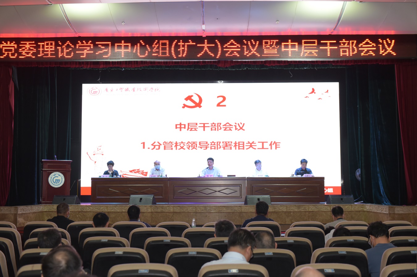7月8日上午,学校在天河校区东区礼堂召开党委理论学习中心组(扩大)会议暨中层干部会议,学习贯彻习近平总书记在中央政治局第二十次集体学习时的重要讲话精神,对上半年工作和成绩进行总结并部署下半年的工作。学校党委书记汤才,党委副书记、校长何汉武,党委副书记、纪委书记夏韩辉,党委委员、副校长陈珊兴,党委委员、副校长赵红出席会议。