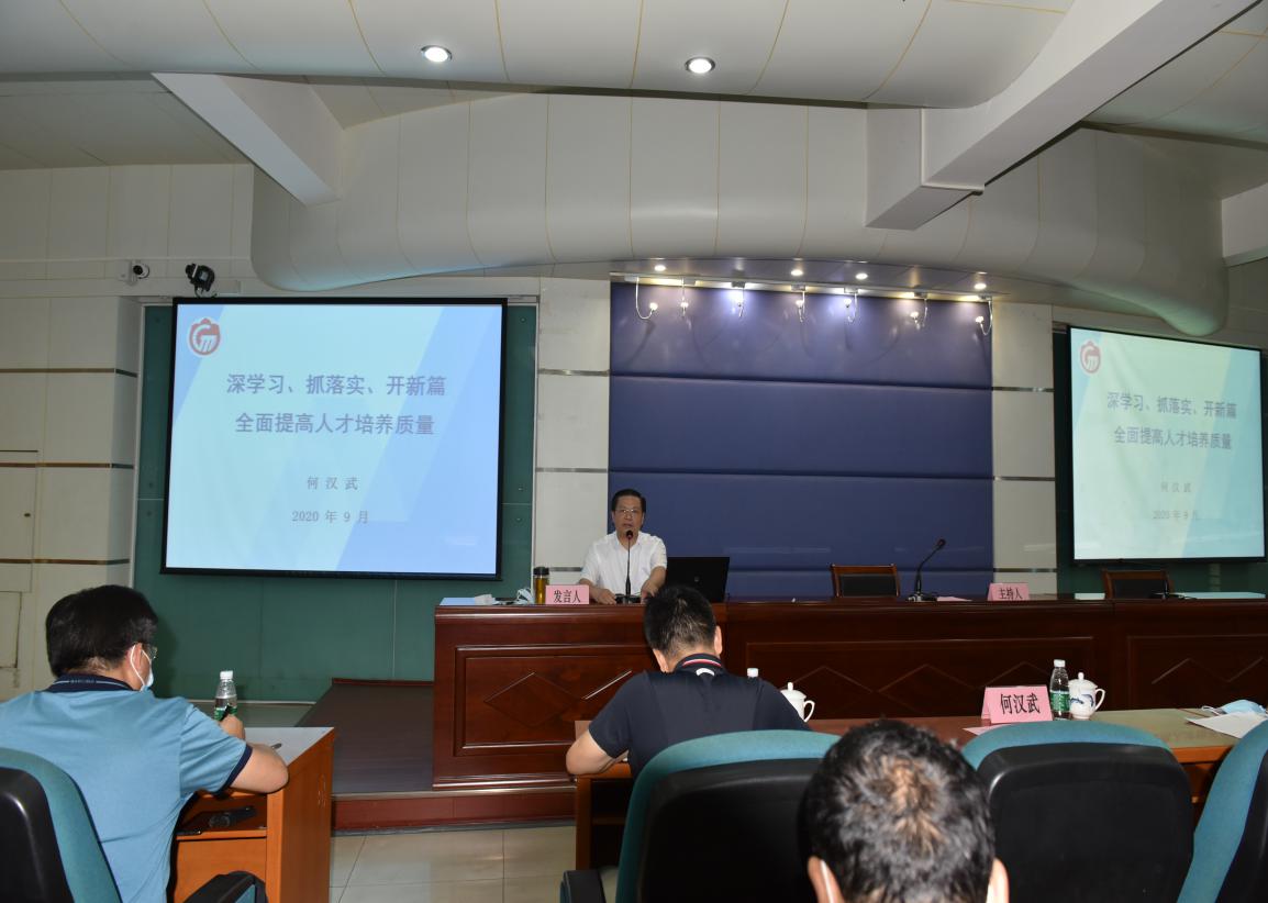 学习班上何汉武作了“深学习、抓落实、开新篇—全面提高人才培养质量”的专题报告,他对新时代的人才培养提出了新要求,强调了不断学习新思想的重要性,结合第三方评价畅谈了人才培养质量遇到的现实问题以及未来需做出改进的方向,鼓励大家为全面提高新时代高等教育质量文化不断努力。