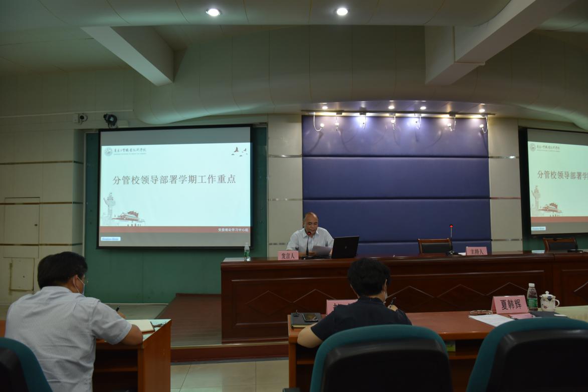 会议期间,夏韩辉、陈珊兴、赵红分别通过学习《习近平谈治国理政》第三卷,结合实际对学期工作重点进行了详细部署并召开分片工作会议进行贯彻落实。信息中心王斌就信息安全作了专题报告。学生处刘建军、教务处赵文龙、人事处杨慧、总务处王展强、质评中心王平、工商学院周清莲、测绘学院速云中等汇报了学期重点工作思路和目标。