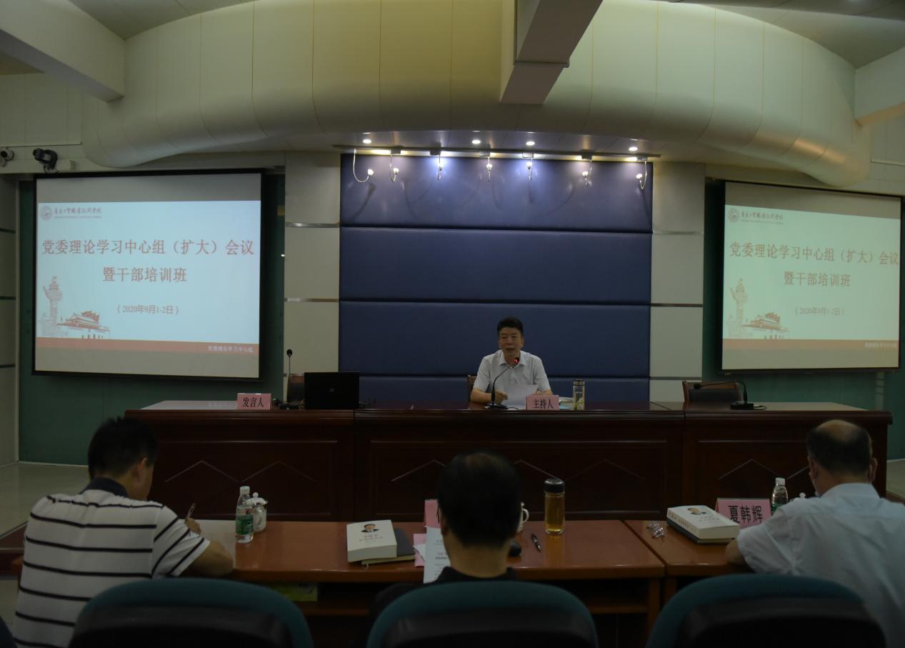 9月1日至2日,学校在天河校区西区报告厅举办了为期两天的党委理论学习中心组(扩大)暨干部培训班会议。学校党委书记汤才,党委副书记、校长何汉武,党委副书记、纪委书记夏韩辉,党委委员、副校长陈珊兴和党委委员、副校长赵红出席会议,全体中层干部和三级机构负责人等近150人参加了会议。会议由汤才同志主持。本次会议的重点是集中组织认真学习《习近平谈治国理政》第三卷,结合实际推动学校全面从严治党工作和中心工作。