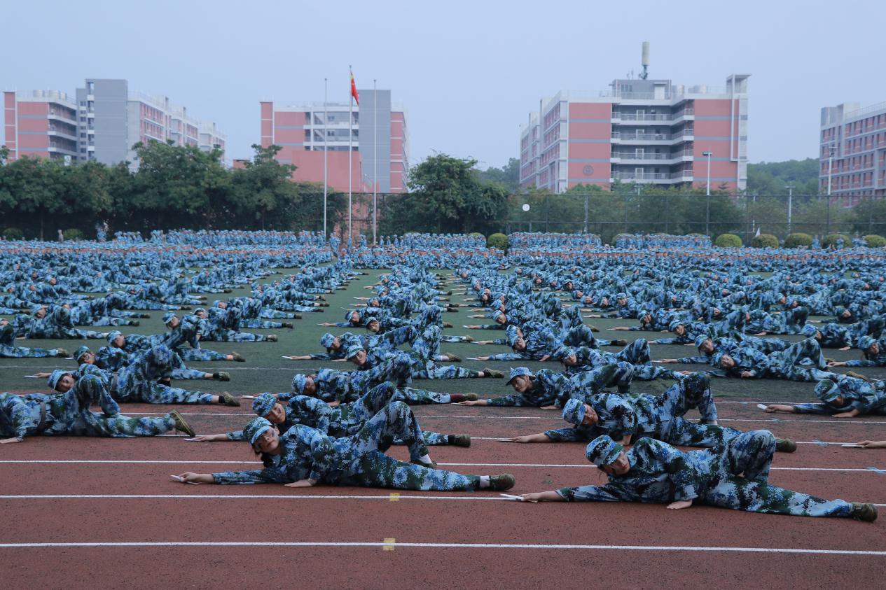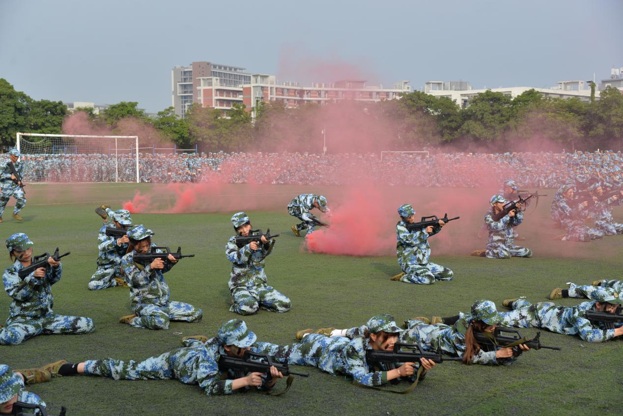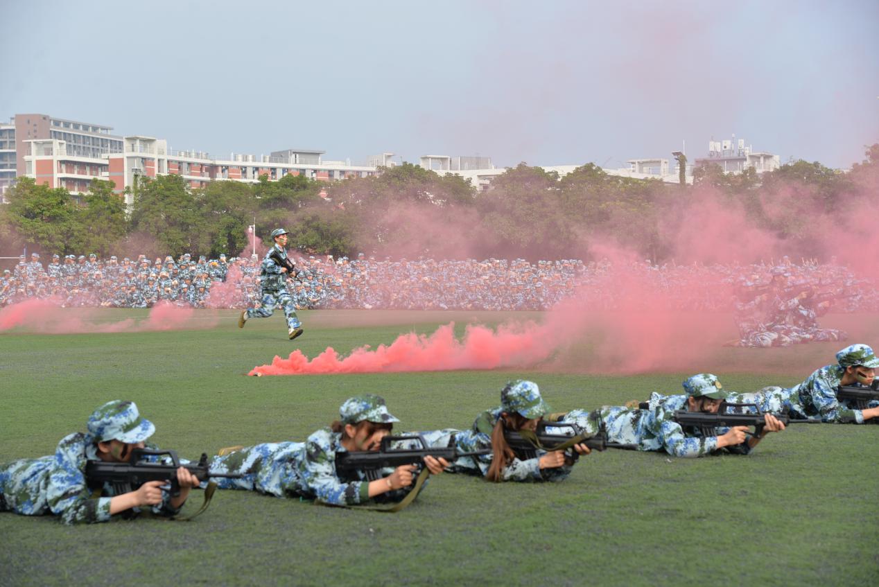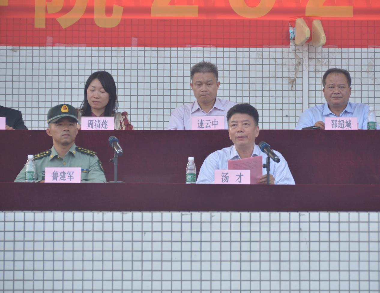汤才作军训总结讲话,他首先代表学校全体师生向承训广州市荔湾区武装部及全体教官表示崇高的敬意和真诚的感谢,向顺利通过军训考验的同学们表示热烈的祝贺,向坚守一线的辅导员们、班主任和老师们致以亲切的问候,并对同学们提出了几点希望:一要志存高远,心怀家国;二要脚踏实地,求真力行;三要勤慎朴实,积厚成器;四要坚持锻炼,强健体魄。