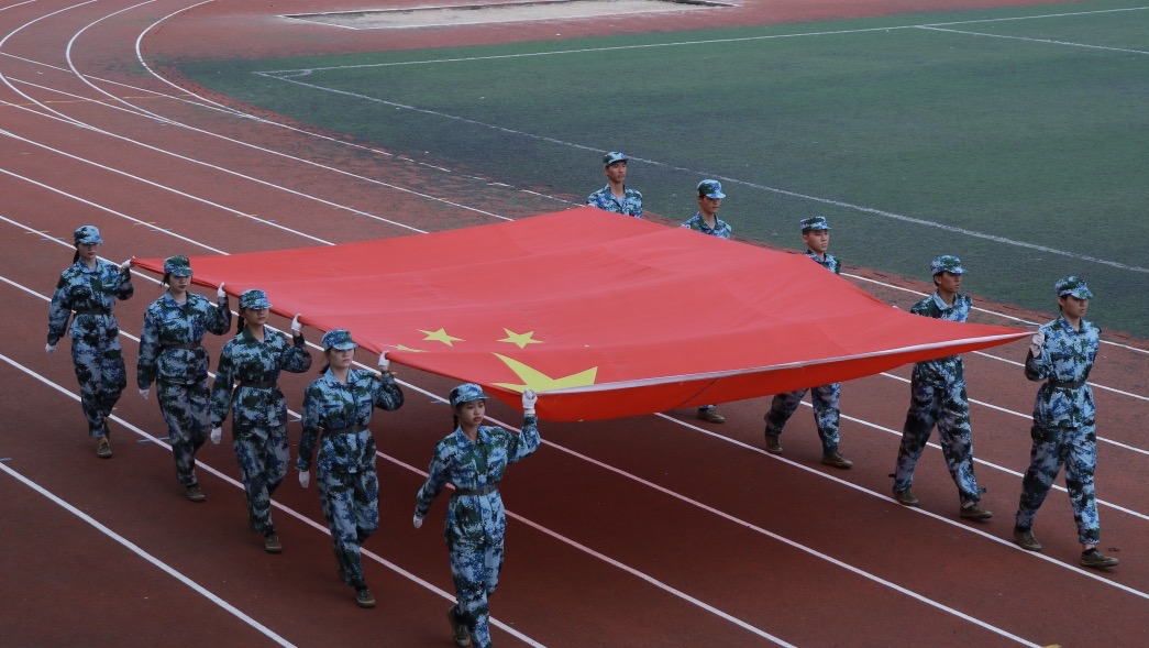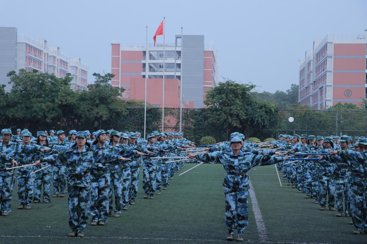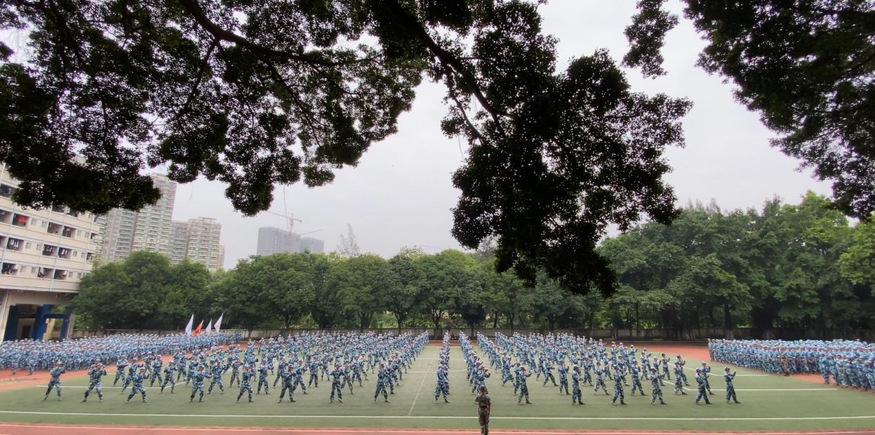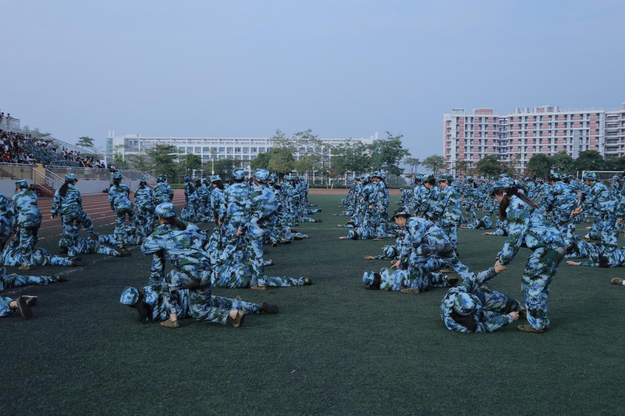 汤才作军训总结讲话,他首先代表学校全体师生向承训广州市荔湾区武装部及全体教官表示崇高的敬意和真诚的感谢,向顺利通过军训考验的同学们表示热烈的祝贺,向坚守一线的辅导员们、班主任和老师们致以亲切的问候,并对同学们提出了几点希望:一要志存高远,心怀家国;二要脚踏实地,求真力行;三要勤慎朴实,积厚成器;四要坚持锻炼,强健体魄。