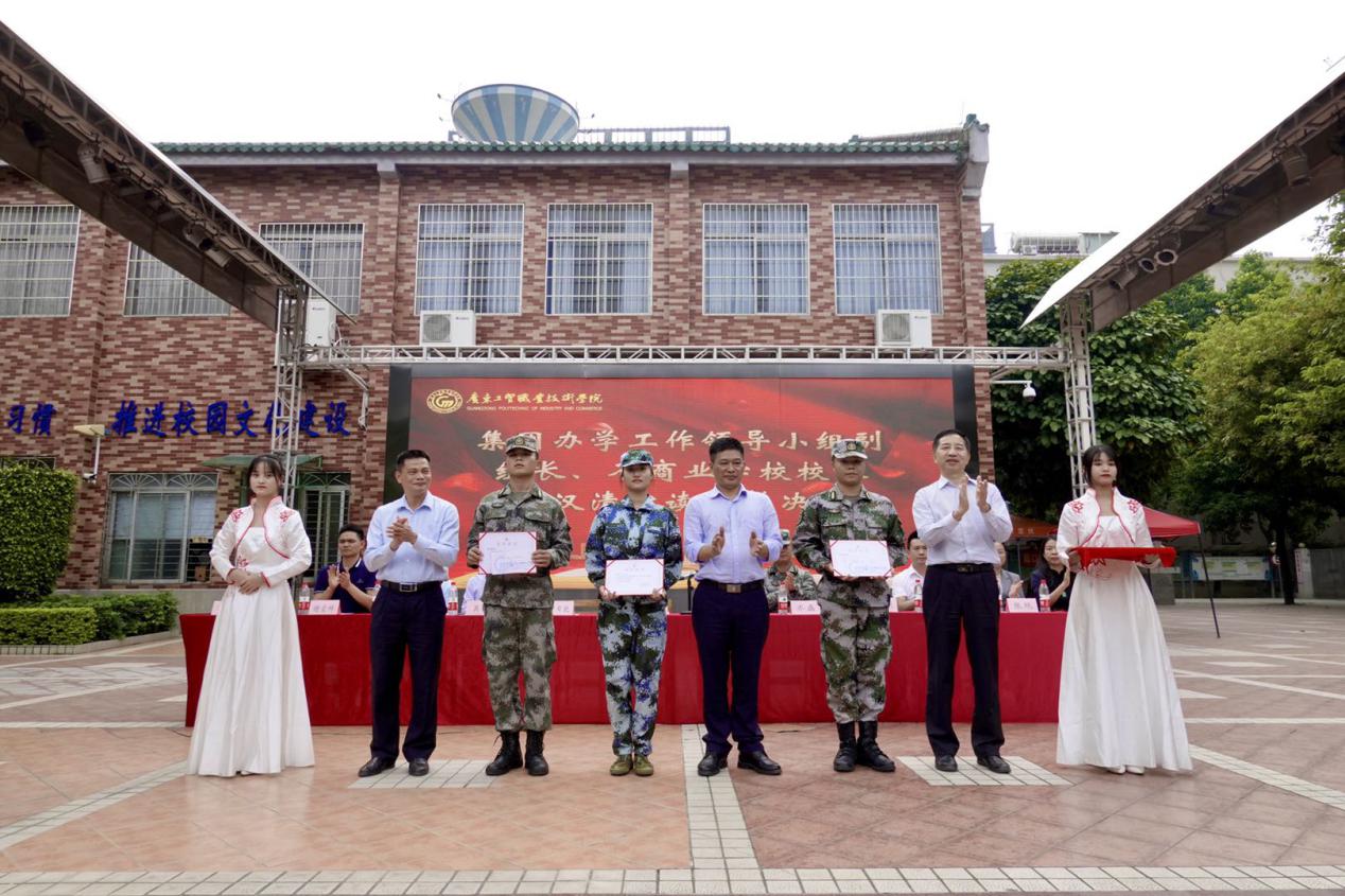 10月30日下午,我校2020级军训总结大会在白云、天河及荔湾三校区同时隆重举行。学校党委书记汤才,党委副书记、纪委书记夏韩辉,党委副书记赵红,党委委员、副校长陈珊兴,党委委员、副校长唐毓秋,集团办学工作领导小组副组长、广东省商业职业技术学校校长杜汉清,党委书记许日就,党委副书记沈彬,广州市荔湾区人民武装部军事科领导鲁建军、黎大贵、齐磊出席会议,学校相关部门、各党总支相关人员出席。