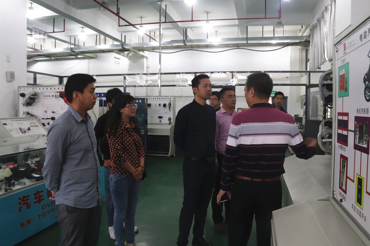 交流会现场 随后,在我校教师的带领下,河源理工学校教师代表团来到行知楼101新能源汽车技术实训基地参观并作进一步专业交流,共同探讨了新能源汽车专业人才培养模式、专业发展及实训室建设等方面的问题,谋求资源共享、互利互惠的合作交流模式。