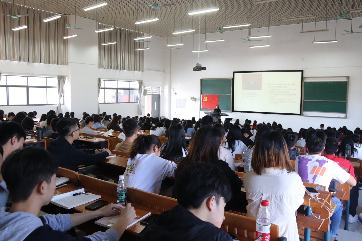 为深入贯彻落实《中国共产党发展党员工作细则》,做好党员发展工作,进一步提高发展对象的思想政治觉悟,坚定共产主义理想信念,端正入党动机,严格党员发展工作程序,保障党员发展质量。11月9日上午,马克思主义学院毛玲老师在白云校区明德楼2区306课室为2019年第二期发展对象作《党的十九大精神解读》专题报告。