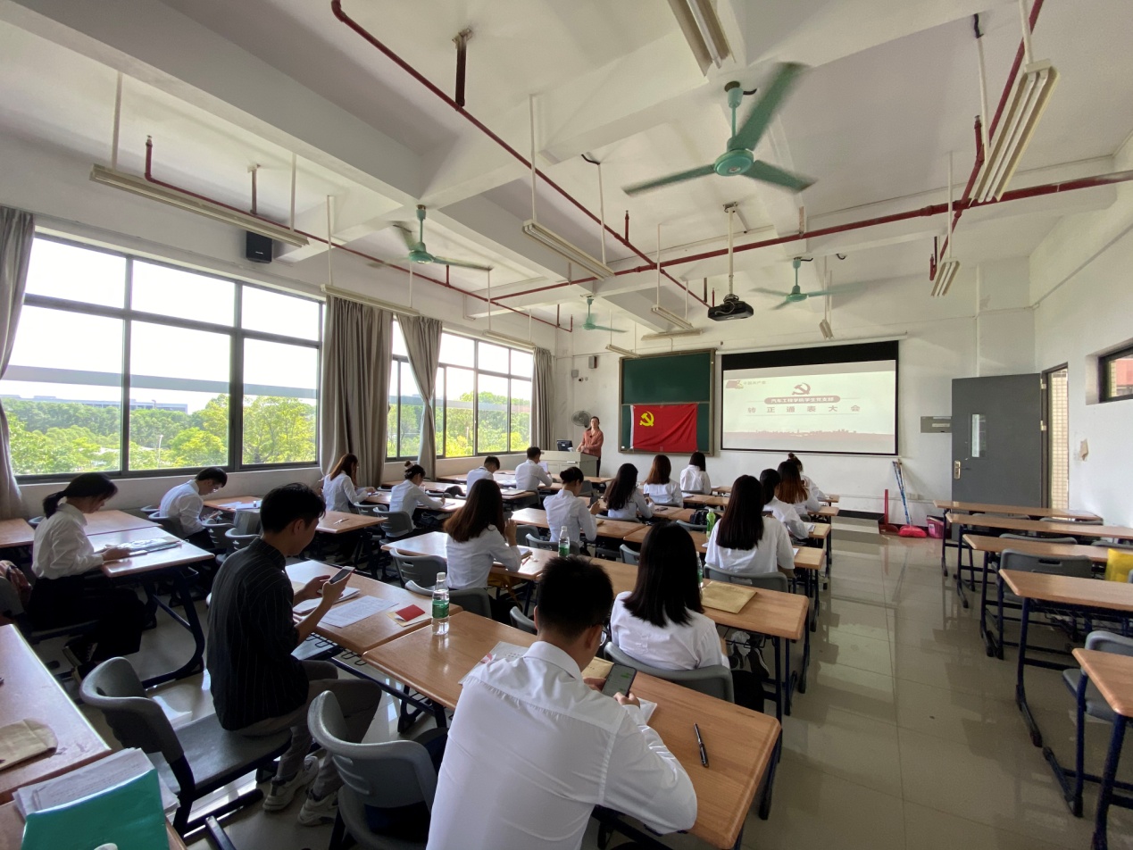 2020年6月4日,汽车工程学院学生党支部在明德楼一区315召开预备党员转正大会,对杨舒妍等13名预备党员的转正申请进行讨论。会议由支部书记刘彩云主持,出席本次会议的有党总支书记彭卫东、党总支副书记欧敏、学院院长兼党总支副书记王艳芬、办公室主任兼党总支组织员陈锐钊、支部纪检委员蔡少德以及支部的其他正式党员、预备党员。