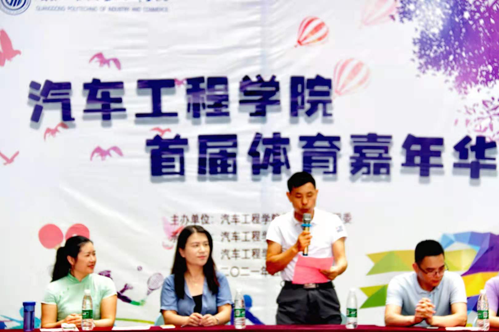 为庆祝中国共产党成立100周年,引导大学生走下网络,走出宿舍,走向操场,汽车工程学院于5月18日下午在格物致知广场举办首届体育嘉年华。出席本次体育嘉年华趣味赛的领导嘉宾有学院党总支书记彭卫东、副书记欧敏,体育艺术教学部教师刘剑,学工办主任蔡少德,辅导员陈宏伟、刘彩云、陈莹颖、桂晶晶、石小玲,学院2019级、2020级学生参加了本次活动。