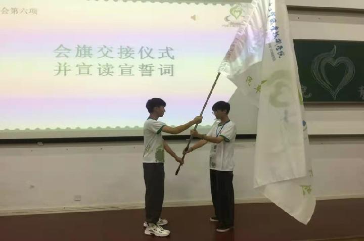 会旗交接仪式 最后,19级秘书长陈广龙与20级新任副会长陈威彤进行会旗交接仪式。交接的不仅是会旗,更是责任,是青协传承了一代代的志愿服务精神。