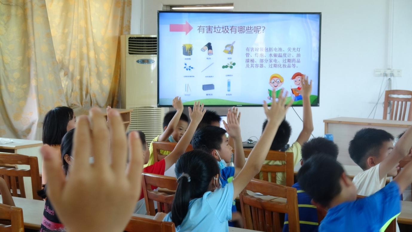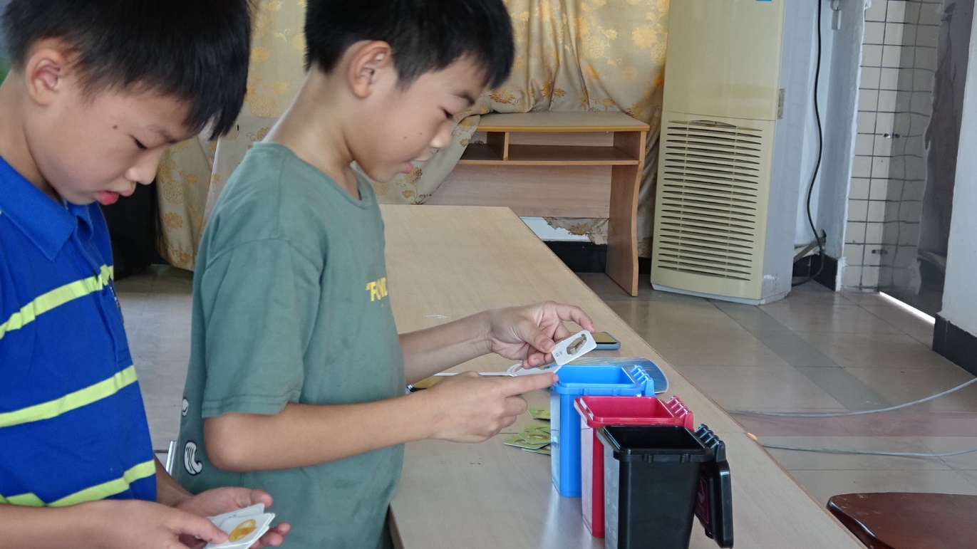 宣讲活动结束后,还增设了模拟垃圾分类小游戏环节,邀请湴湖村的小朋友们进行了一个简单的垃圾分类小游戏,用标有具体名称的垃圾卡片代替垃圾投放到标识正确的垃圾桶,以此来加深对垃圾分类的理解。