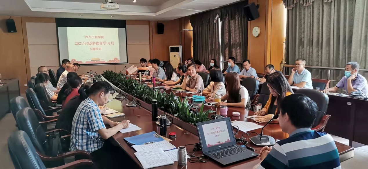 9月7日下午,汽车工程学院在明德楼二楼中心会议室开展纪律教育月专题学习,会议由学院党总支书记彭卫东主持,汽车工程学院全体教师参加了会议。