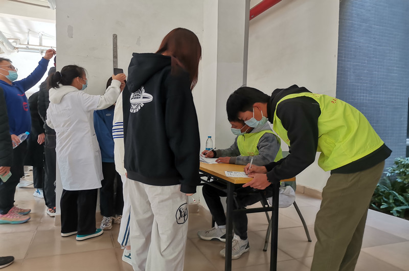体检现场 体检如期开始,新生体检设有身高、体重、抽血、视力检查等多个项目,志愿者们分工明确、各司其职,参与到体检的各个环节,从维持现场秩序、耐心为同学们解答疑问,到配合医生进行身高、体重以及血压的测量等,体检现场随处可见“绿色马甲”的身影。在志愿者们的用心协助下,整个体检过程十分有序、高效,志愿者们积极负责、周到耐心的态度也得到了现场医生以及同学们的大力赞赏。