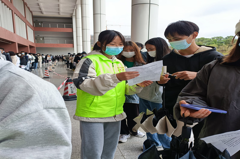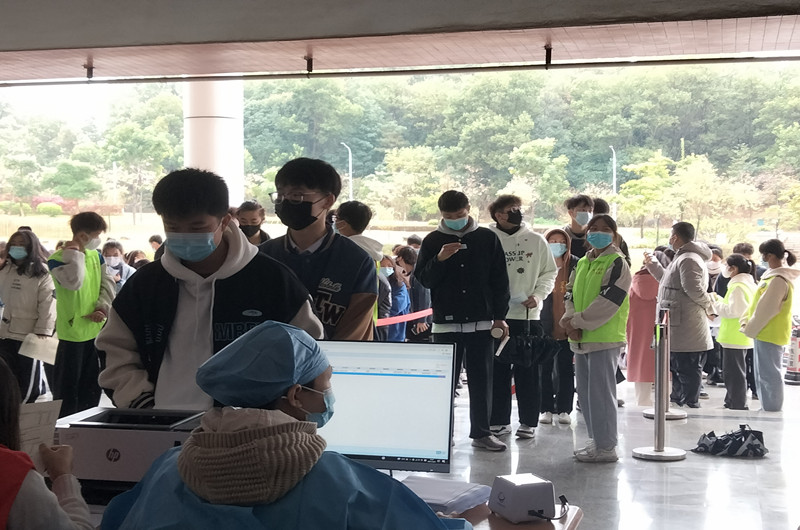 同学们排队登记