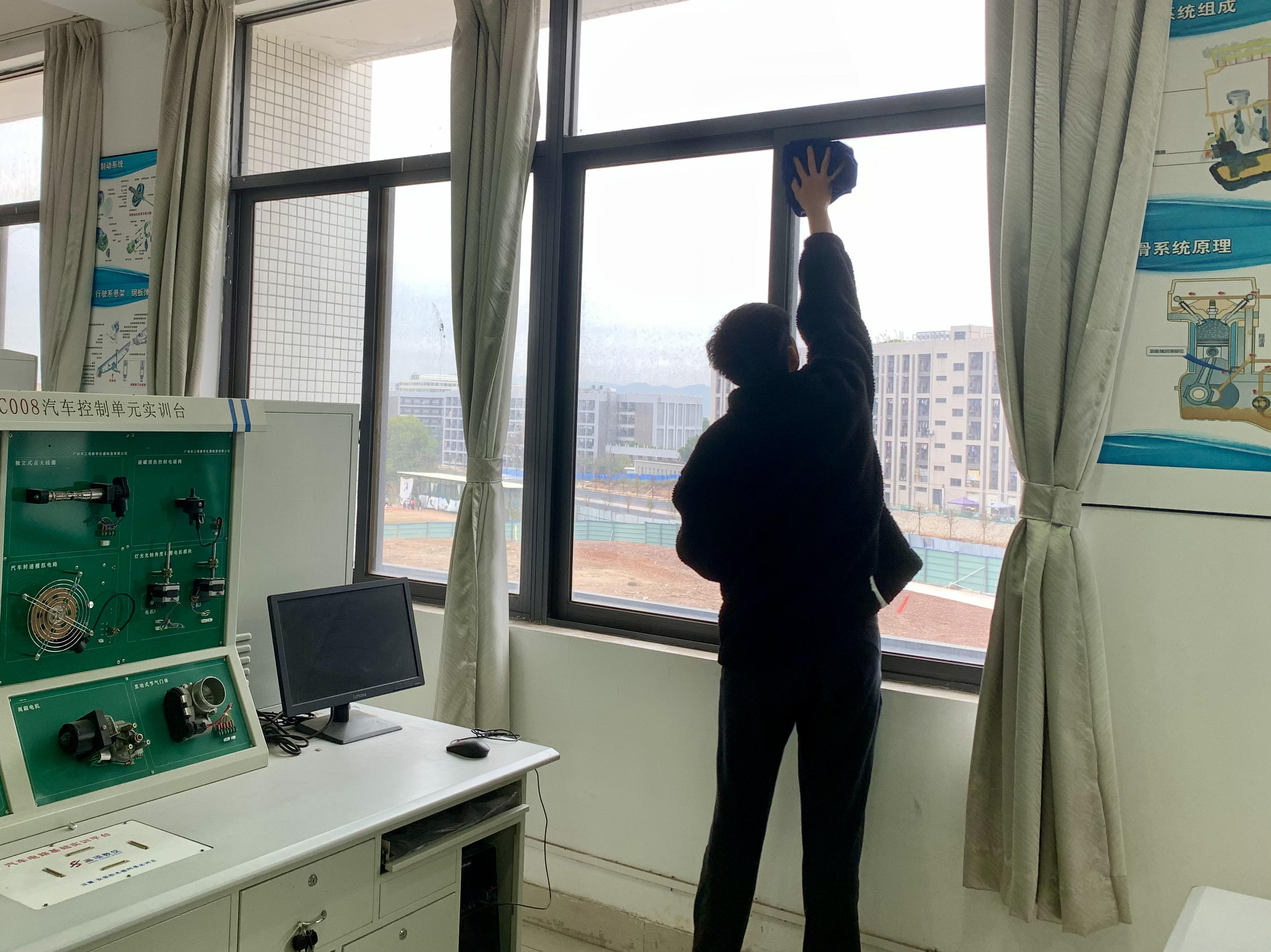 社会实践活动现场 在本次社会实践活动过程中,各组进行了明确的分工合作,对行知楼所负责的教室进行了仔细的清扫。大家齐心协力、团结协作,共同完成了清扫工作,大大提高了工作效率。这次入党积极分子重点打扫了教室的地板、窗户、桌面、椅子,清扫了黑板、电脑显示器表面的灰尘,并将垃圾及时清理带走,将教室打扫得一尘不染。在活动过程中同学们有条不紊的开展清理工作,充分体现了我院学生积极向上、踏实肯干的精神面貌。