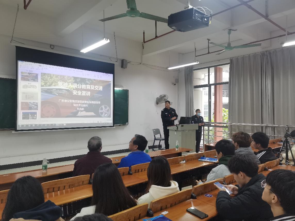 12月29日下午,广州交警支队车管所警官张连东来我校开展交通安全讲座。汽车工程学院副院长潘梦鹞、专任教师吕小勇、实验员李佳威及120余名学生参加了本次讲座。