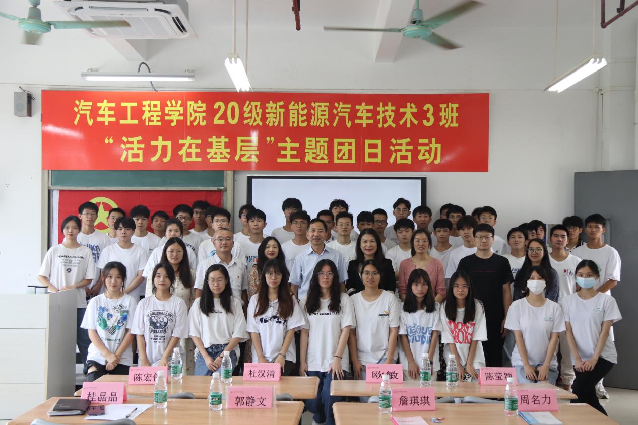 为深入学习习近平总书记关于共青团“奋进新征程、建功新时代”的重要思想,引领团员青年深刻感悟“两个确立”的决定性意义,增强“四个意识”、坚定“四个自信”、做到“两个维护”,以实际行动迎接党的二十大,庆祝建团百年。6月15日下午,汽车工程学院在明德楼1区406教室开展20新能源3班“活力在基层”主题团日活动。学校副校长杜汉清、汽车工程学院党总支副书记欧敏、辅导员陈莹颖、陈宏伟、詹琪琪、郭静文、周名力以及20新能源3班全体成员参加活动。活动由班主任桂晶晶主持。