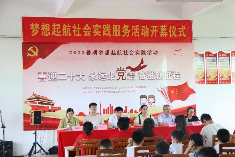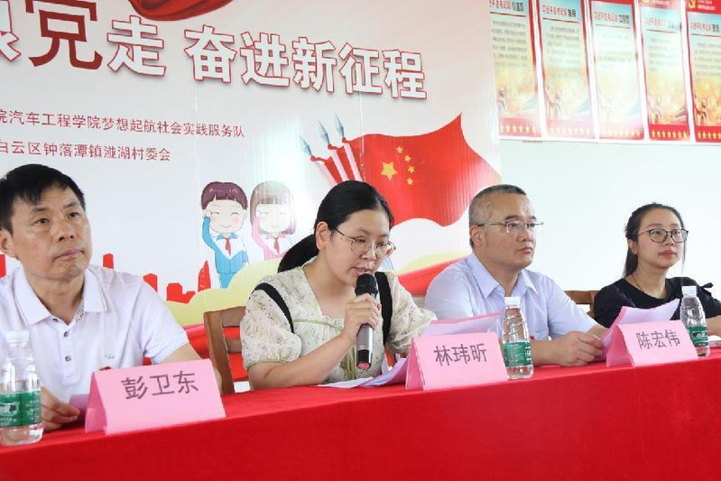 为全面贯彻中共十九大和十九届历次全会精神,认真落实中央政协工作会议精神,增强“四个意识”、坚定“四个自信”、做到“两个维护”,深入学习习近平总书记在庆祝中国共产主义青年团成立100周年大会上的重要讲话精神,在社会课堂中“受教育、长才干、作贡献”以建团100周年为契机,展现新一代青年的风貌,汽车工程学院于2022年7月13日至7月24日,在广州市白云区钟落潭镇湴湖村开展以“青春用随党,团徽耀百年”为主题的2022年暑期社会实践活动,以实际行动庆祖中共共产主义成立100周年。 7月13日上午9点,太阳集团城官网1407汽车工程学院青年志愿者协会分会组织的“梦想起航”社会实践服务队,在广州市白云区湴湖村文化艺术中心举行开幕式。出席开幕式的有校方领导汽车工程学院党总支书记彭卫东,“梦想起航”服务队指导老师陈宏伟、周名力、詹琪琪、林诺怡;村党委委员林玮昕,“梦想起航”公益服务队19名队员,以及湴湖村本次参与“三下乡”社会实践活动的学生家长。 开幕式现场 仪式开始后,主持人介绍受邀本次当场的嘉宾,并以播放视频方式,带领全场观众一起回忆往昔的点点滴滴,一同跟随着梦想起航“三下乡”公益服务队的步伐,去领略这个队伍的精彩历程和特色成果。 紧接着,由湴湖村党委委员林玮昕致辞。她表示希望我们用实际行动服务群众,进一步解放思想,开拓创新,积极探索“三下乡”活动的新内容、新形式、新方法、新手段、新机制,不断提高活动的质量和深度,为小朋友带来新的课程体验,给村民实实在在的帮助和支持,让我们充分感受新形势、新思想给我们带来的新气息,新变化。同时也向广东工贸梦想起航社会实践服务队提以下几点要求:认真教导小朋友、密切关注孩子们的情况、在此次活动中学有所成,有所收获! 湴湖村党委委员林玮昕发言 随后,由汽车工程学院党总支书记彭卫东致辞。他表示暑期“三下乡”社会实践活动是当代青年大学生运用知识、施展才华、磨练意志、实践成才的大课堂,是广大青年大学生传播现代文明,弘扬科学精神的重要途径。同时也向参加社会实践活动的老师和同学们提出三点希望:第一,希望带队教师和同学们一定要牢牢树立“安全第一”的思想,始终把安全工作放在首位;第二,希望村民村委们能支持配合我们的工作,家长和小朋友们也能珍惜这次“三下乡”活动期间的美好时光;第三,希望大家把社会当作大课堂,虚心向人民群众学习,脚踏实地,勤思多问,努力提高自己发现问题、分析问题、解决问题的能力。最后,预祝汽车工程学院2022年大学生暑期“三下乡”社会实践活动取得圆满成功! 汽车工程学院党总支书记彭卫东发言 而作为本次“梦想起航”社会实践服务队队长,林悦则表示本次“三下乡”社会实践活动将通过支教,调研,参观红色基地等形式展开,全面贯彻中共十九大和十九届历次全会精神,使大学生在社会实践活动中受教育、长才干、作贡献,并在服务农村经济发展的实践中拓展自身素质,促进全社会学习贯彻习近平新时代中国特色社会主义思想。她还向参加社会实践活动及志愿服务活动的同学们提出了三点希望:学习百年党史,汲取奋进力量;勇担时代大任,争做有为青年;组织悉心策划,注意安全推进。