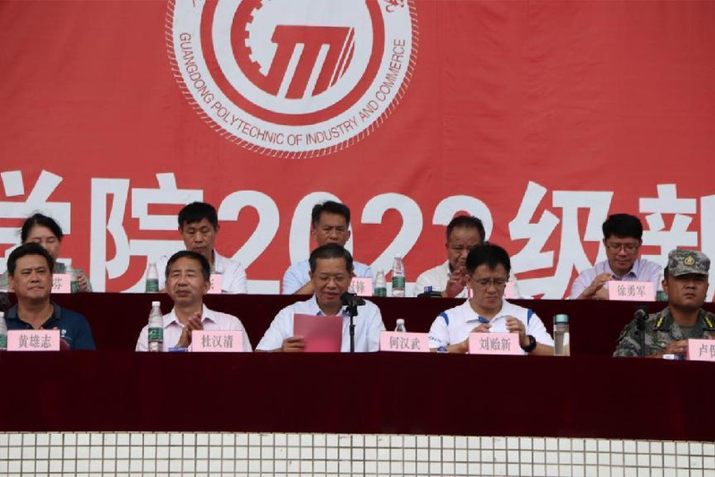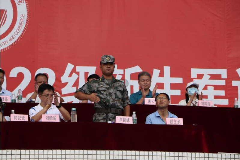 军训铸魂,步伐铿锵,英姿勃发,展我风采!9月22日上午8:30,迎着秋风,顶着烈阳,广东工贸职业技术学院2022级新生军训总结大会暨表彰大会在白云校区田径场隆重举行,党委副书记、校长何汉武,副校长刘贻新,副校长杜汉清,党委委员、党委办公室主任黄雄志,教务处处长赵文龙,学生工作处处长刘建军,团委书记陈冠峰,汽车工程学院党总支书记彭卫东,汽车工程学院院长王艳芬,军训团团长卢保林与2022级全体师生共同参与本次总结大会,共同检阅2022级新生在军训期间的训练成果。大会由党委委员、党委办公室主任黄雄志主持。