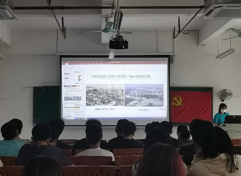 党课现场 随着时间的推移,党课的宣讲内容已来到改革开放的历史成就。黄奕婷以深圳改革开放发展为例,从历史的角度出发,细致到人民群众的生活水平,大到国家社会各方面的发展现状,点明改革开放的必要性。黄奕婷详细阐述了改革开放42载以来,党带领人民走过的非凡历程、取得的非凡成就,以实践证明了中国特色社会主义道路是当代中国大踏步赶上世界、引领时代发展的康庄大道,必须毫不动摇走下去,并将中国共产党带领全国人民解放思想、攻坚克难、锐意进取的精神内涵不断丰富并发扬光大。