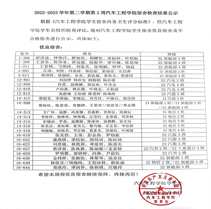同学们认真打扫宿舍 为促进学生之间互相帮助和团结合作的意识,增进宿舍成员之间的感情和凝聚意识,增强当代大学生的卫生意识,汽车工程学院还举办了二月文明宿舍评比活动,经过我院实践部严格按照检查标准,对汽院学生宿舍进行全面检查并评分,现公示汽车工程学院二月文明宿舍优良宿舍与不及合格宿舍。