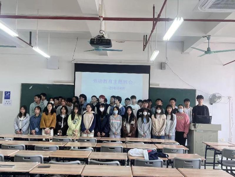 班会合照 作为新时代的大学生,劳动教育必不可少,劳动创造了世界,劳动改造了世界,劳动创造了价值。随着PPT的展开,一页页生动的故事映入眼前,同学们从中明白了劳动的意义,明白了美好生活的来之不易。班会氛围和谐轻松,同学们都心有感触。
