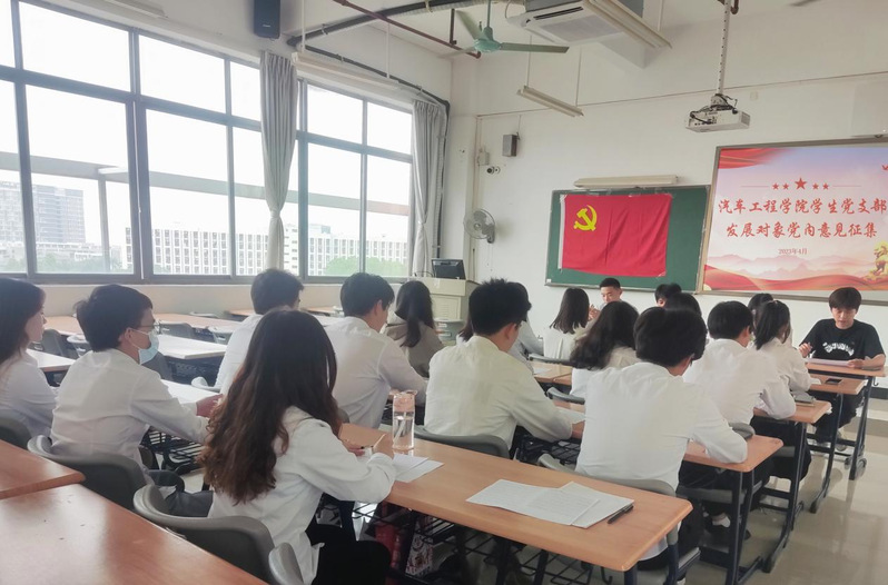 汽车工程学院学生党支部于2023年4月13日下午2点在明德楼1-616召开了发展对象党内意见征集会议。本次会议由辅导员陈玉华主持,支部全体在校党员参与。